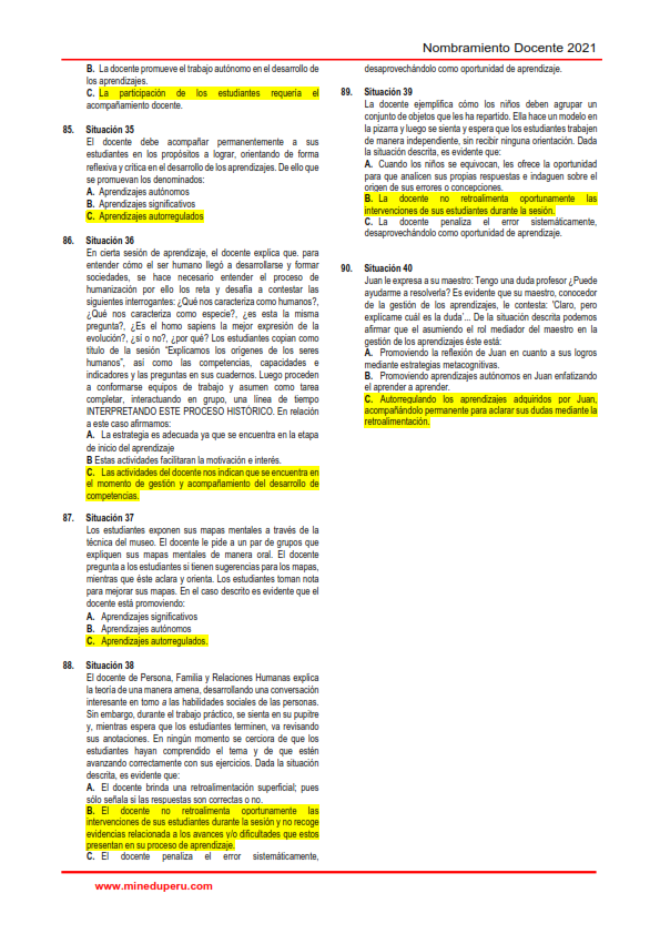 Solucionario del cuadernillo de examen de nombramiento docente 2022